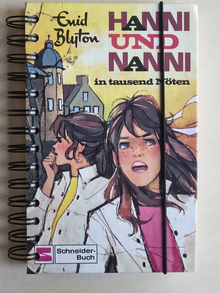 Notizbücher aus alten Kinder- und Jugendbüchern. Jedes Kritzel besteht aus dem Original-Cover, einzelnen Originalseiten (ca. 10 bis 15) des jeweiligen Buchs und vielen Blankoseiten (ca. 90) für eigene Notizen. Recyclingpapier. Robuste Spiralbindung. Stabiles Gummiband zum Verschließen des Buches.