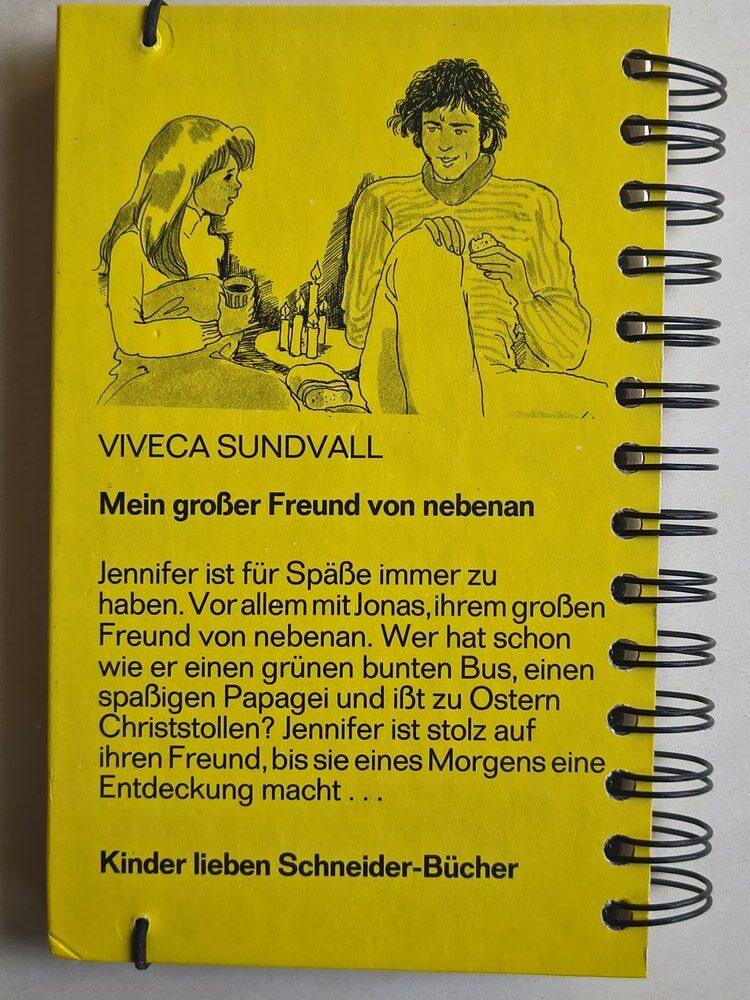 Notizbücher aus alten Kinder- und Jugendbüchern. Jedes Kritzel besteht aus dem Original-Cover, einzelnen Originalseiten (ca. 10 bis 15) des jeweiligen Buchs und vielen Blankoseiten (ca. 90) für eigene Notizen. Recyclingpapier. Robuste Spiralbindung. Stabiles Gummiband zum Verschließen des Buches.