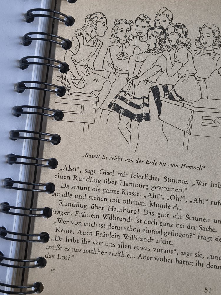 Notizbücher aus alten Kinder- und Jugendbüchern. Jedes Kritzel besteht aus dem Original-Cover, einzelnen Originalseiten (ca. 10 bis 15) des jeweiligen Buchs und vielen Blankoseiten (ca. 90) für eigene Notizen. Recyclingpapier. Robuste Spiralbindung. Stabiles Gummiband zum Verschließen des Buches.