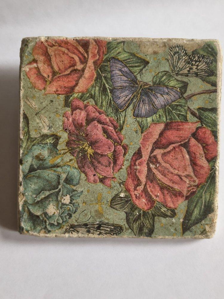 Tolle Untersetzer aus Naturstein im Retro-Look. Feuchtigkeits- und hitzestabil. Motive sowohl alter Vorsatz- und Geschenkpapiere als auch Illustrationen alter Bücher, in verschiedenen Kombinationen. Jedes ein unverwechselbares Einzelstück und absoluter Hingucker. Handmade in Karlsruhe. Auch als Wandschmuck wunderschön. 10 x 10 cm, ca. 250g. Mit vier Noppen auf der Unterseite zum sicheren rutschfesten Stand.