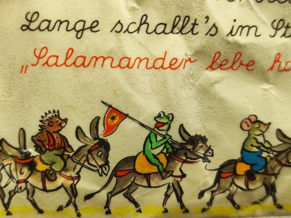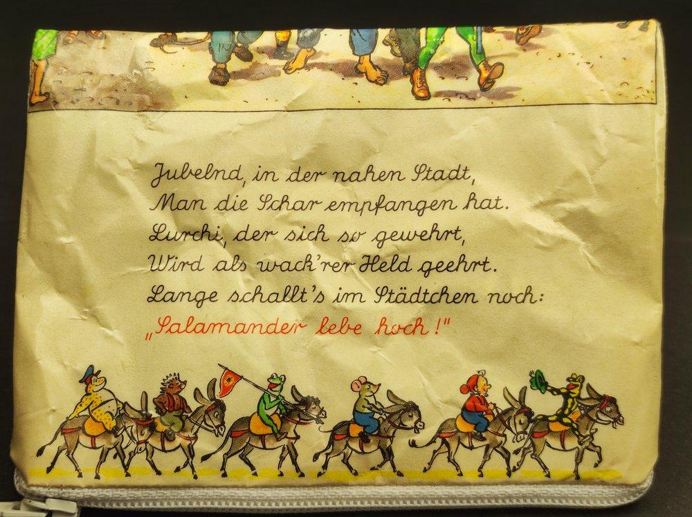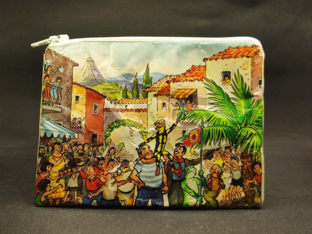 Kleines Täschchen für Scheckkarten, Geld, Kosmetik oder Schätze aller Art. Beidseitig kaschiertes Altpapier. Sehr haltbar. Weisser Reißverschluss. Ca. 10 x 7 cm. Aus alten Original LurchiSalamander ® Heften, die wir aus Altpapiersammlungen oder Flohmarkt-Bücherkisten retten. Von uns in Karlsruhe handgefertigt. Einzelstück.